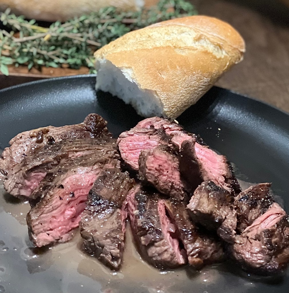 Kalbsonglet mit Sauce Bordelaise und Baguette