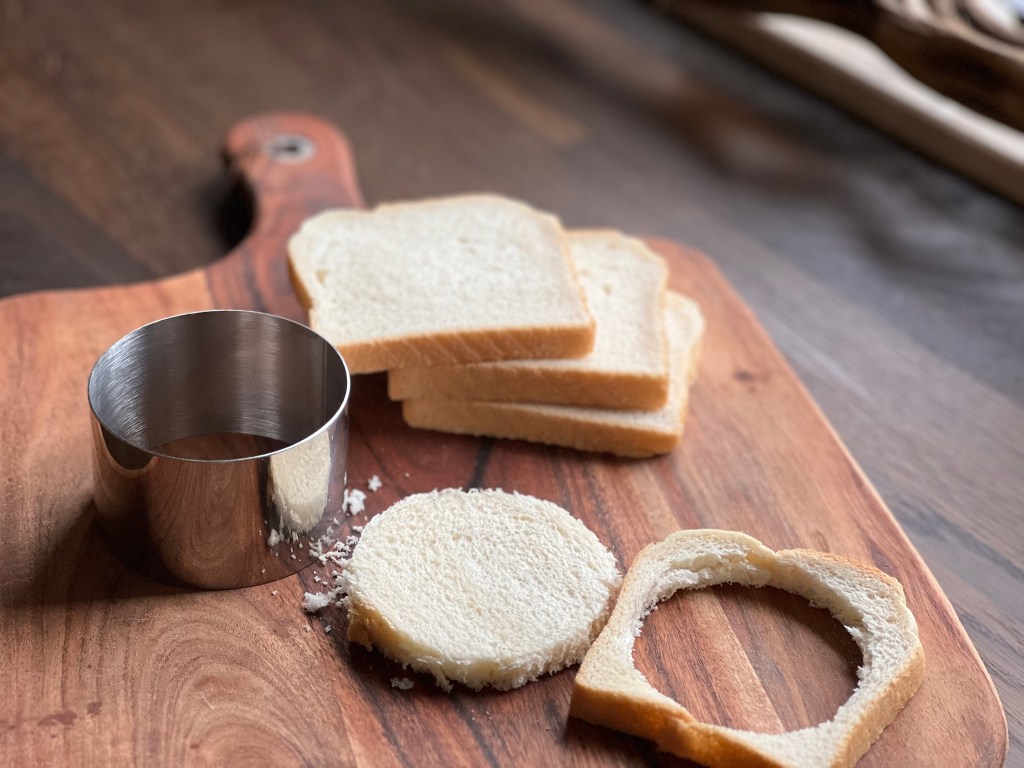 Aus dem Toast mit Hilfe eines Servierrings Kreise ausstechen.