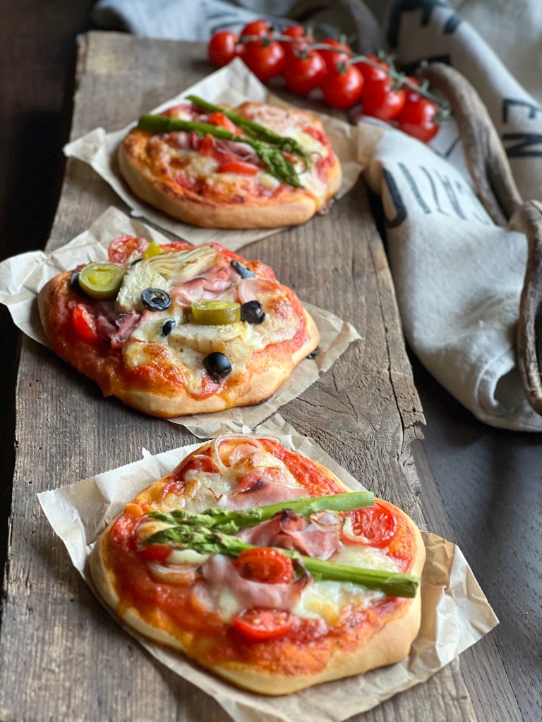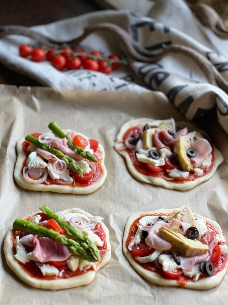 Den Teig nochmals durchkneten und kleine Pizzen formen.