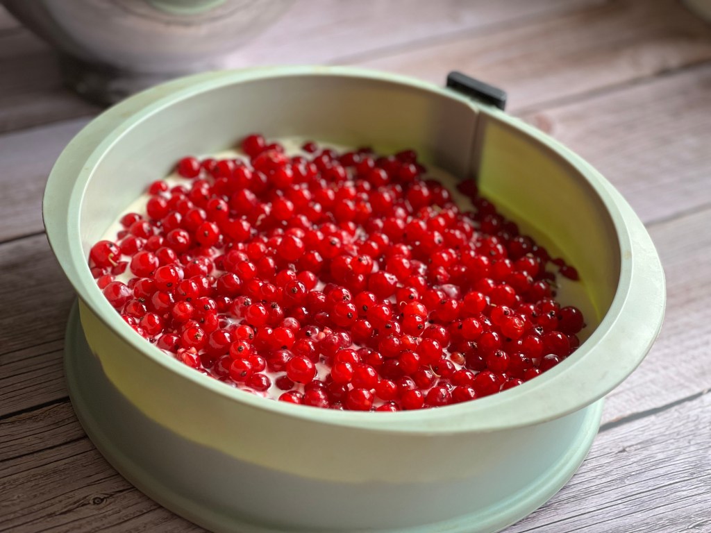 Die Johannisbeeren auf der Quarkcreme verteilen.