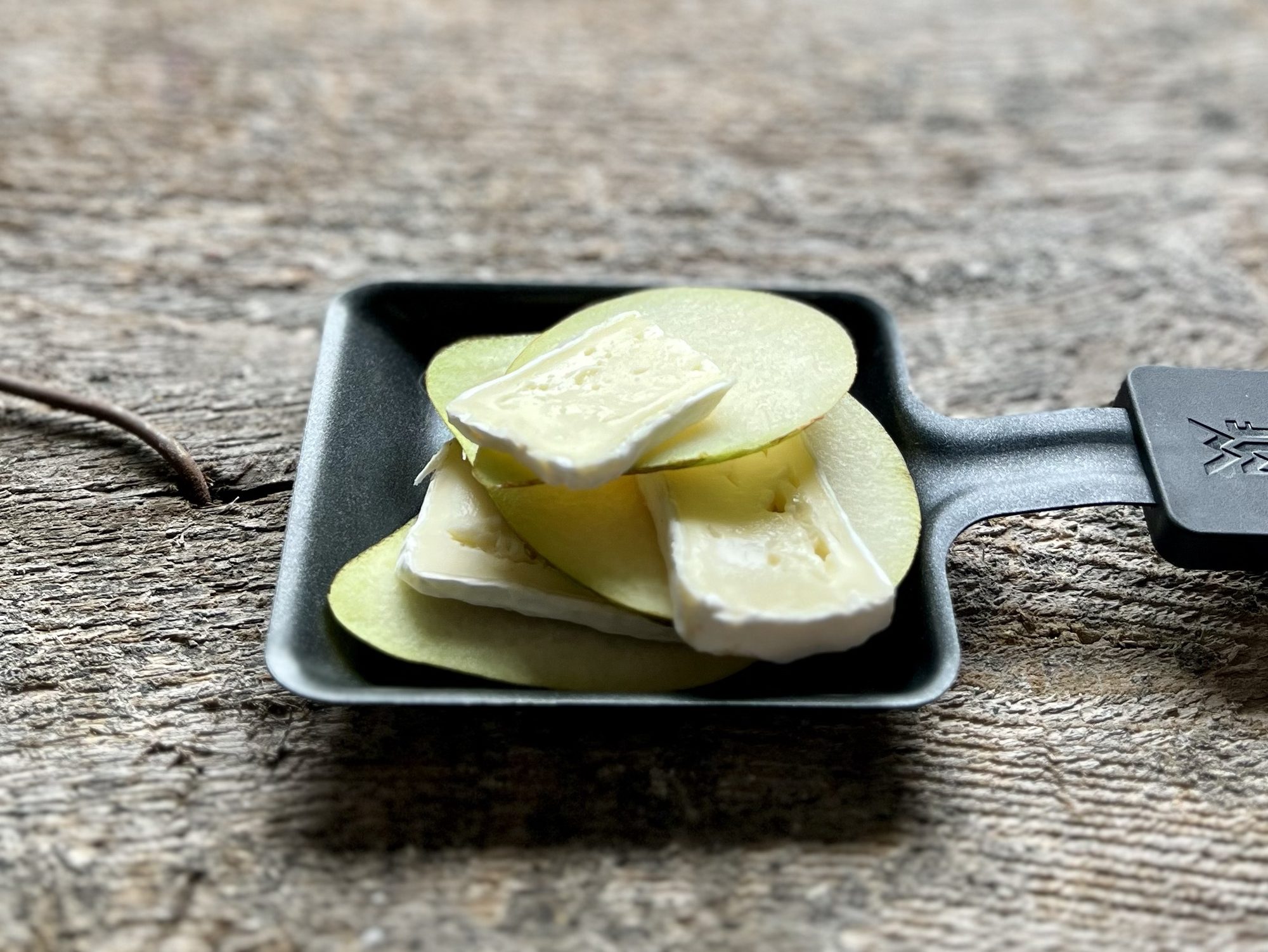 Die Birne in Scheiben und den Camembert in Scheiben schneiden.