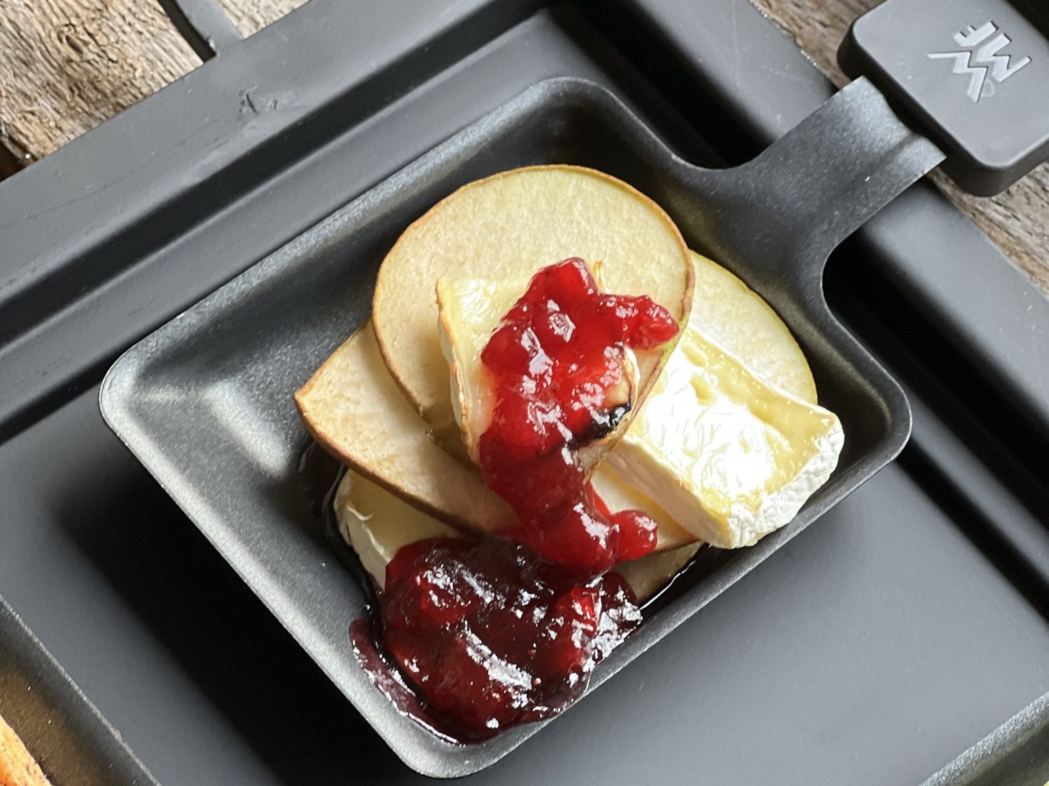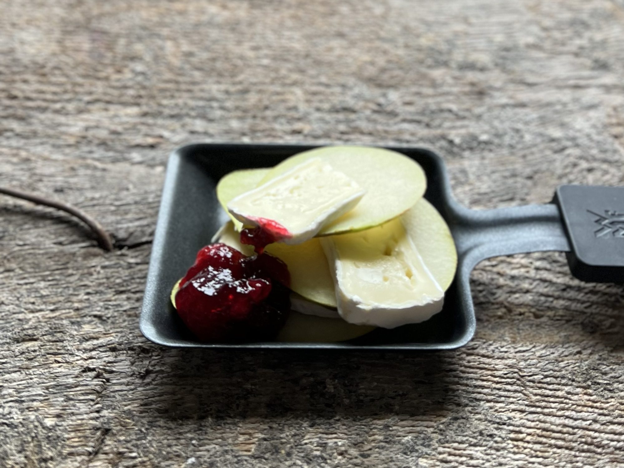 In ein Pfännchen legen und Preiselbeeren dazugeben.