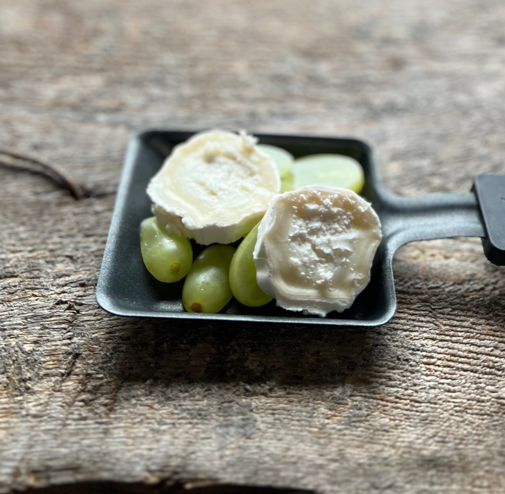 Zwei Scheiben Ziegenkäse darauf legen und mit Honig beträufeln.