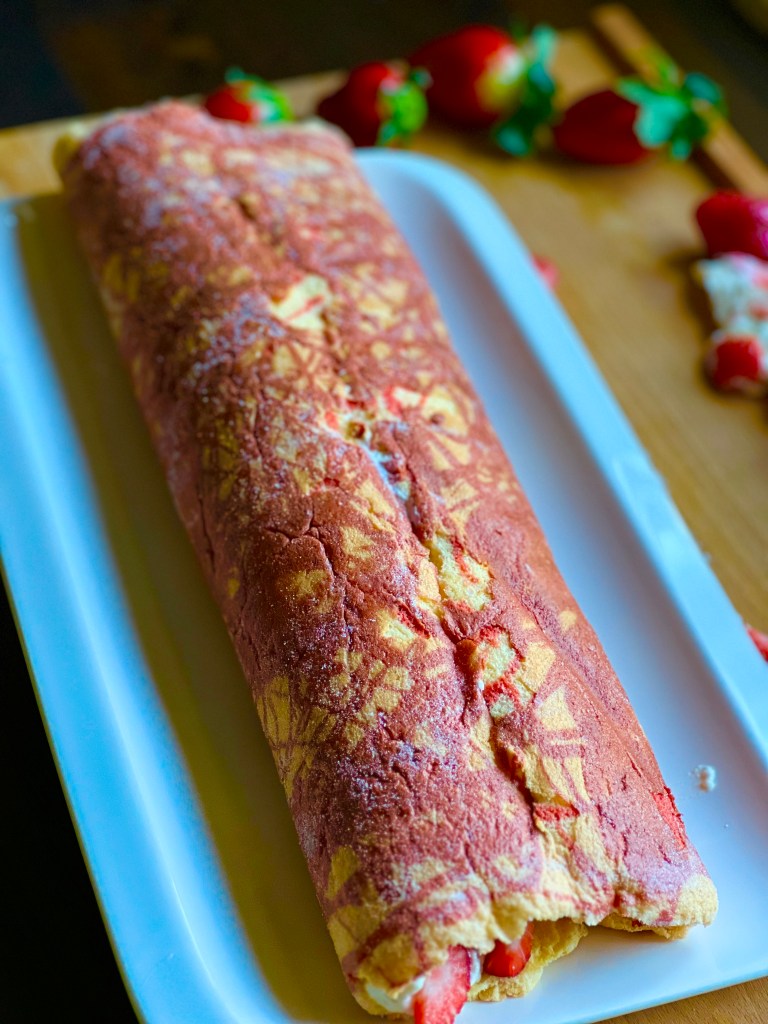 Mithilfe des Tuchs über die Längsseite einrollen. Abkühlen lassen.