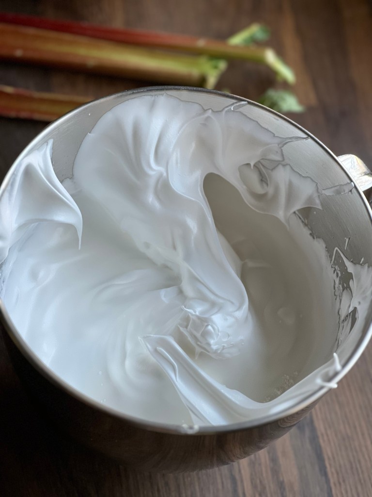 Die Temperatur vom Backofen auf 170 Grad senken und den Kuchen noch 20 Minuten backen. Vorsicht das das Baiser nicht zu dunkel wird, ggf. die Temperatur noch etwas senken.