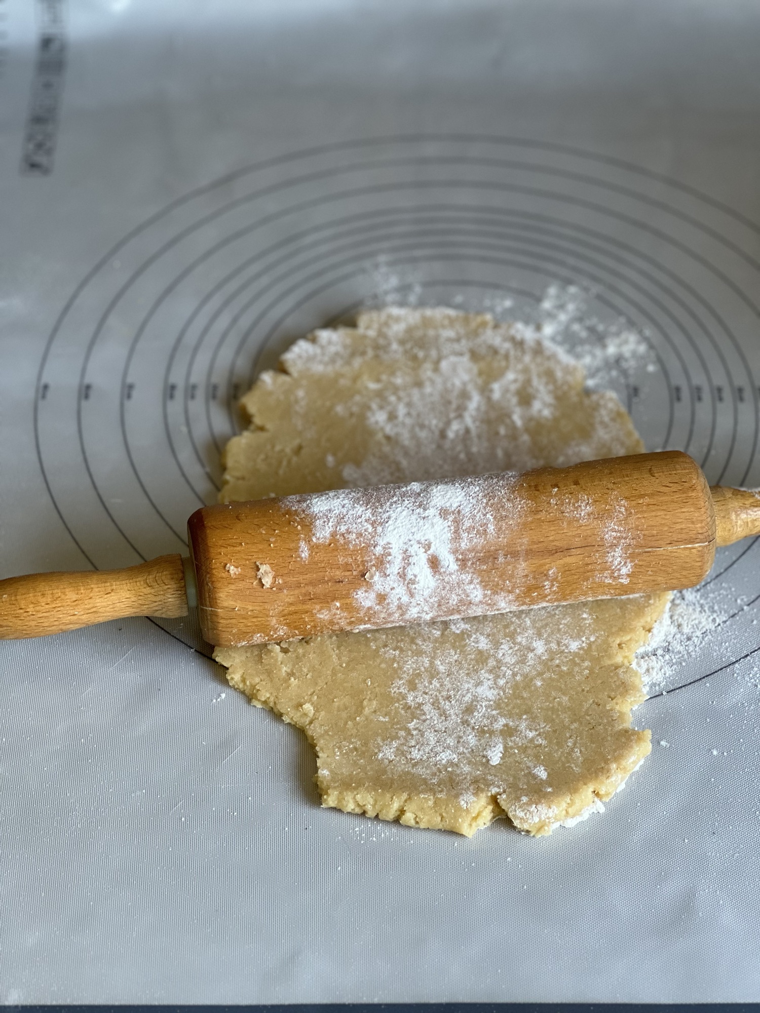 Butter, Zucker und Ei schaumig rühren. Mehl und Mandeln hinzugeben und zu einem glatten Teig verkneten. Zu einer Kugel geformt in Frischhaltefolie wickeln und 1 Stunde kaltstellen.
